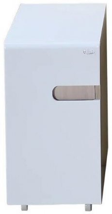 Конструкция на колесиках значительно упрощает процесс уборки в ванной комнате. Ручка, изящно интегрированная в фасад, позволяет сделать эксплуатацию более удобной и практичной. Дверца снабжена механизмом плавного закрывания.
